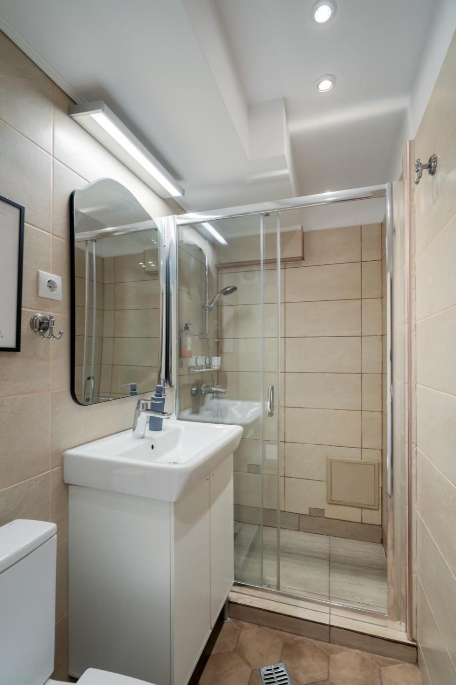 One-Bedroom Apartment. Featuring a private entrance, this air-conditioned apartment is comprised of 1 living room, 1 separate bedroom and 1 bathroom with a walk-in shower and a hairdryer. In the well-equipped kitchen, guests will find a stovetop, a refrigerator, a dishwasher and kitchenware. Boasting a balcony with city views, this apartment also offers a washing machine and a flat-screen TV. The unit offers 2 beds.