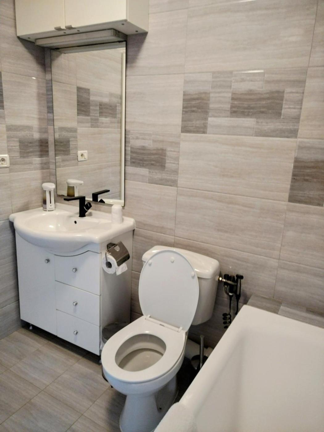 One-Bedroom Apartment. The hot tub is the standout feature of this apartment. This apartment comes with 1 living room, 1 separate bedroom and 1 bathroom with a bath and free toiletries. Guests can make meals in the kitchen that features a stovetop, a refrigerator, a dishwasher and kitchenware. The air-conditioned apartment features a flat-screen TV with streaming services, a washing machine, soundproof walls, a tea and coffee maker as well as garden views. The unit has 2 beds.