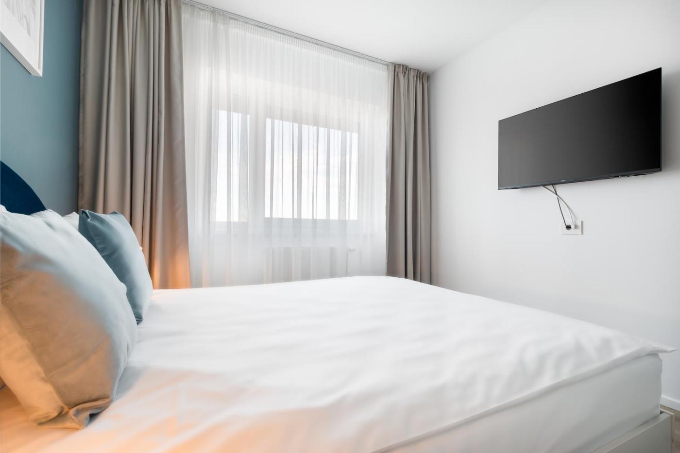 Two-Bedroom Apartment. This spacious apartment includes 1 living room, 2 separate bedrooms and 2 bathrooms with a shower and free toiletries. In the fully equipped kitchen, guests will find a stovetop, a refrigerator, a dishwasher and kitchenware. The air-conditioned apartment offers a flat-screen TV with cable channels, a washing machine, a private entrance, soundproof walls as well as city views. The unit has 3 beds.