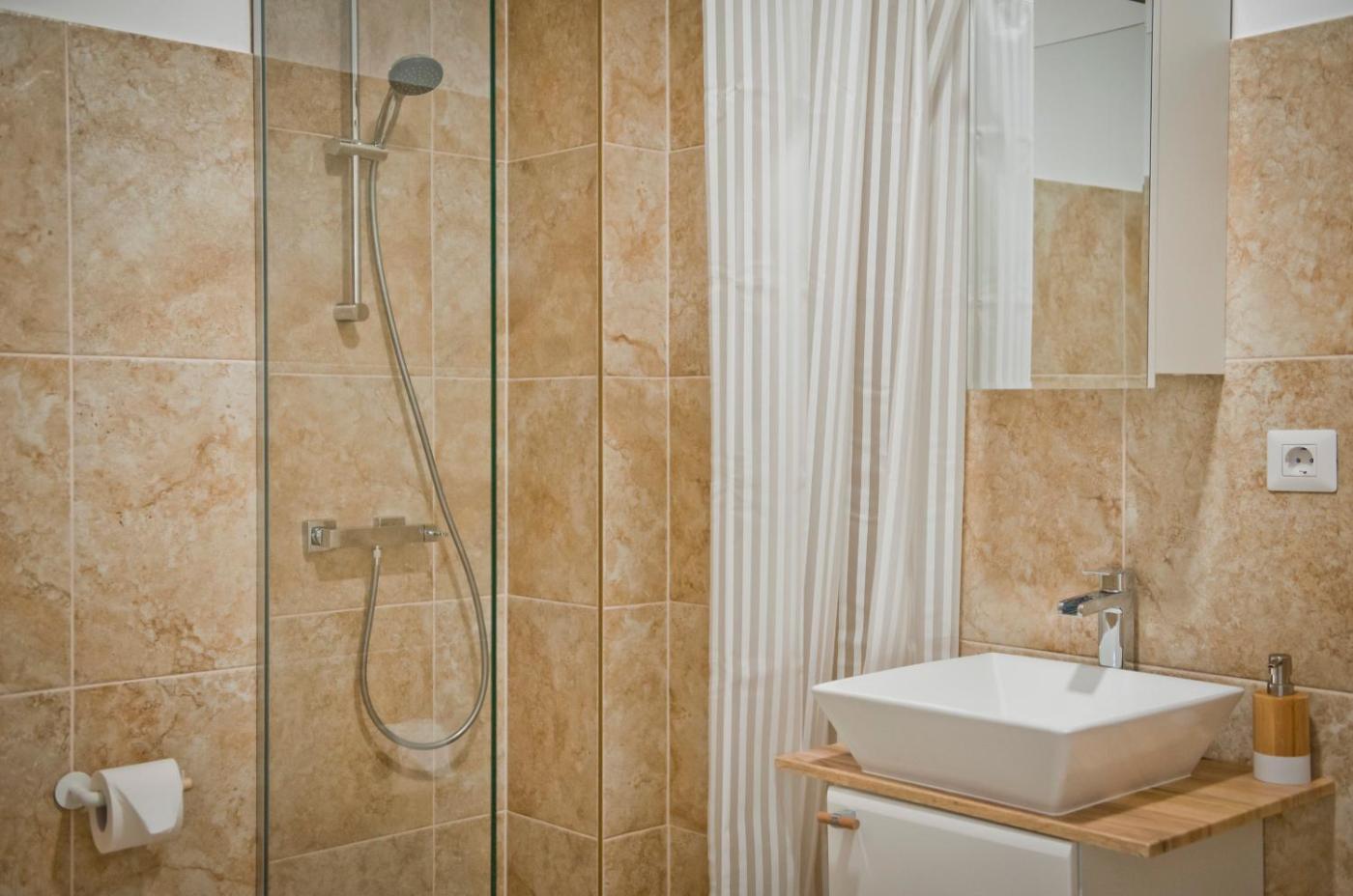 Two-Bedroom Apartment. This spacious apartment includes 1 living room, 2 separate bedrooms and 2 bathrooms with a walk-in shower and free toiletries. In the kitchenette, guests will find a stovetop, a refrigerator, kitchenware and a toaster. The apartment has parquet floors, a seating area with a flat-screen TV with cable channels, air conditioning, a private entrance, as well as a coffee machine. The unit has 3 beds. ;
